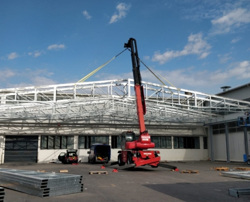 GE.SA. Costruisce le coperture ad HANGAR a struttura reticolare composte da un insieme di travi d’acciaio vincolate tra loro in modo da costituire degli elementi resistenti e indeformabili.